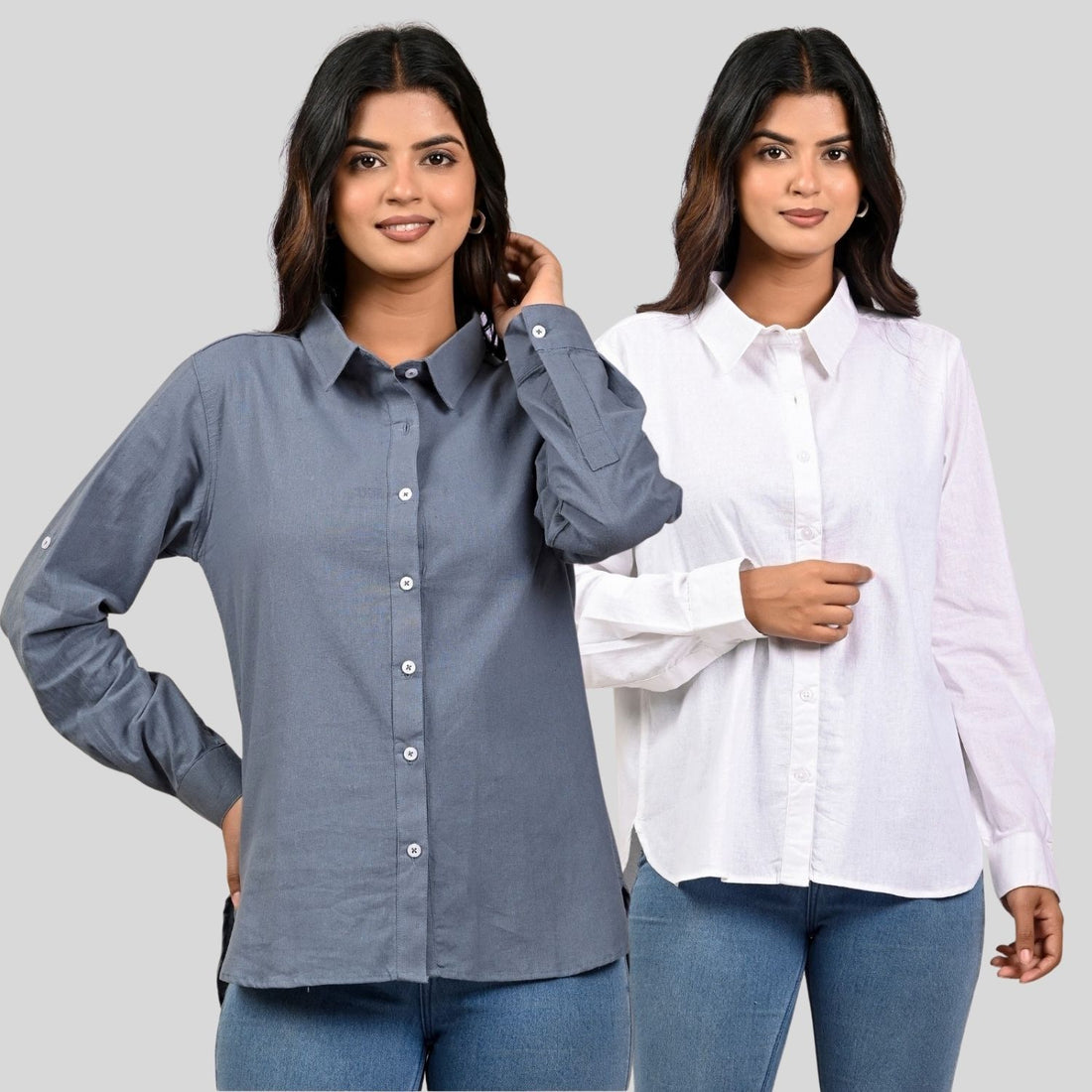 Women Grey And White Solid Airy Linen Cotton Shirts Combo