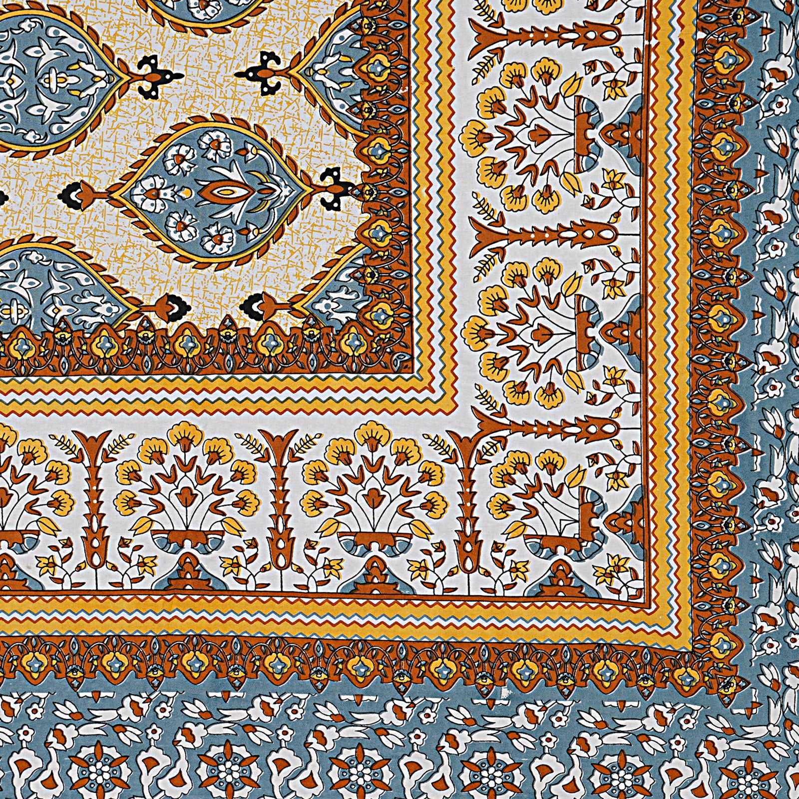 Pure Cotton Jaipur Sanganer Print 100*108 Inch King Size Double Bedsheet ,With 2 Pillow Covers,Yellow-1001-1