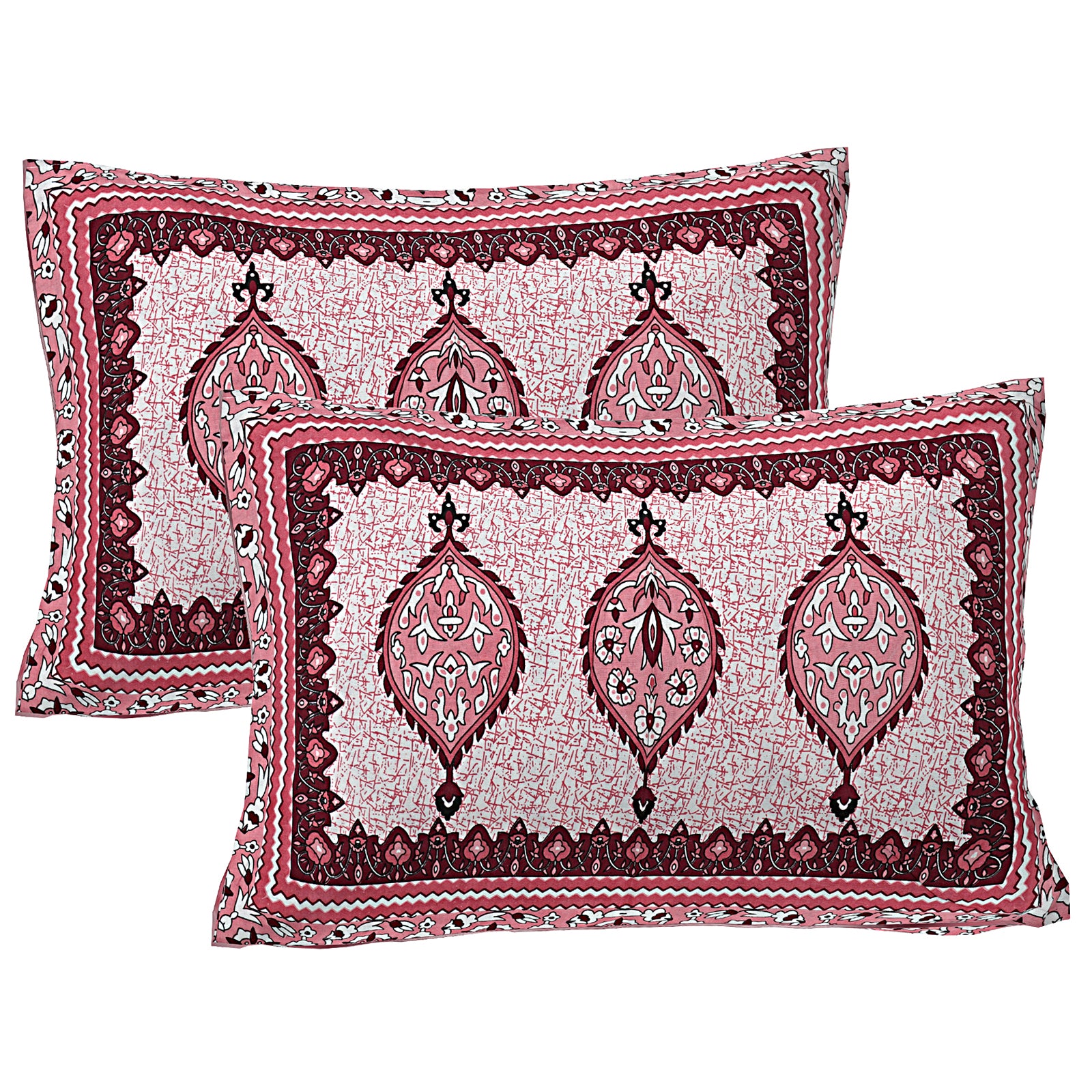 Pure Cotton Jaipur Sanganer Print 100*108 Inch King Size Double Bedsheet ,With 2 Pillow Covers,Red-1001-2