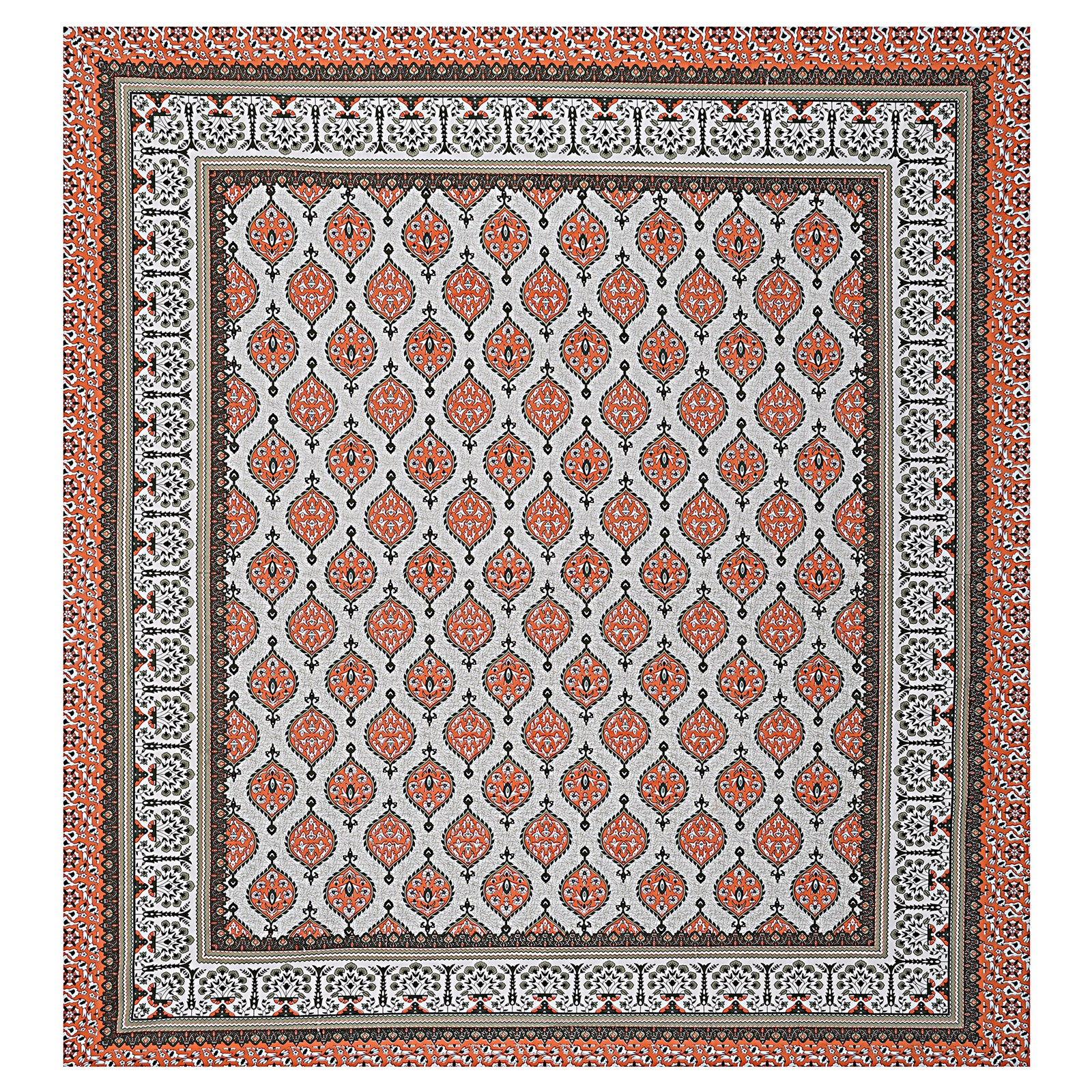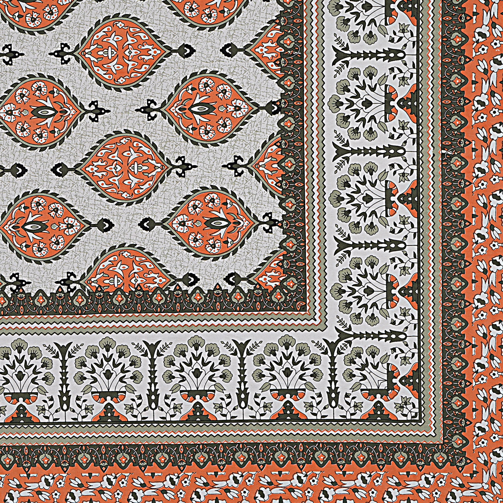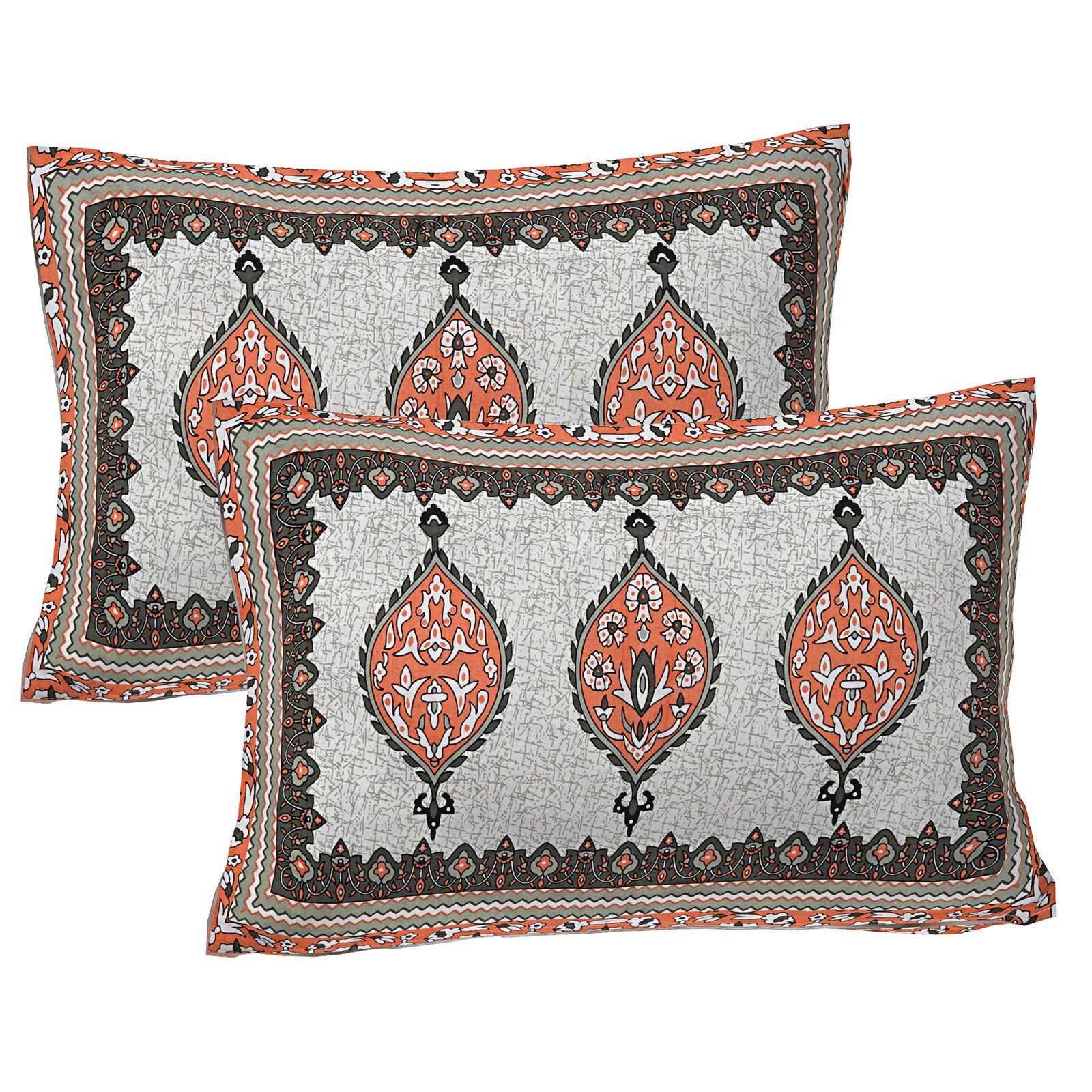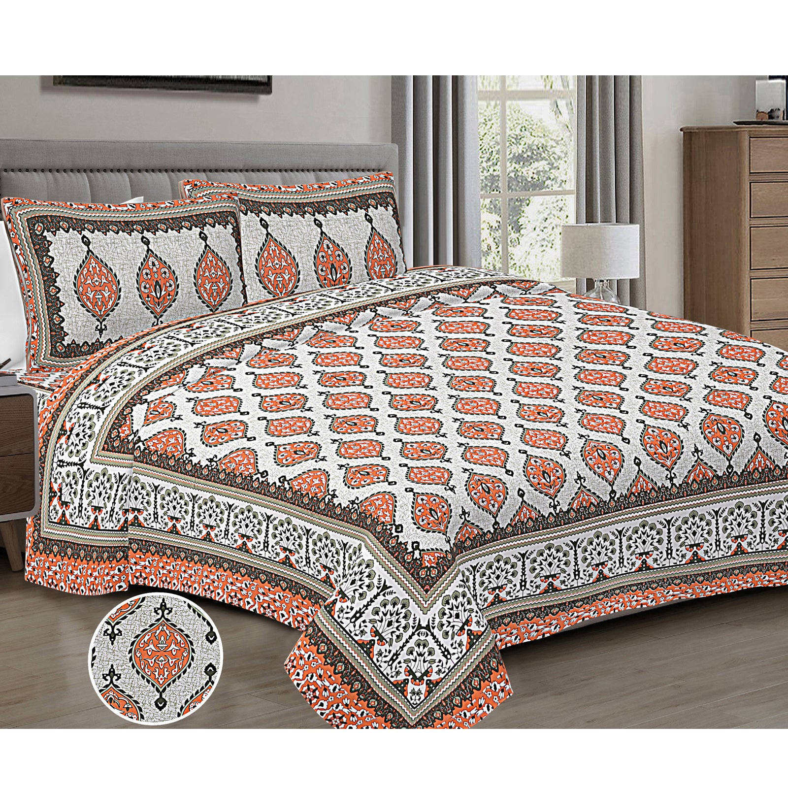 Pure Cotton Jaipur Sanganer Print 100*108 Inch King Size Double Bedsheet ,With 2 Pillow Covers,Orange-1001-3