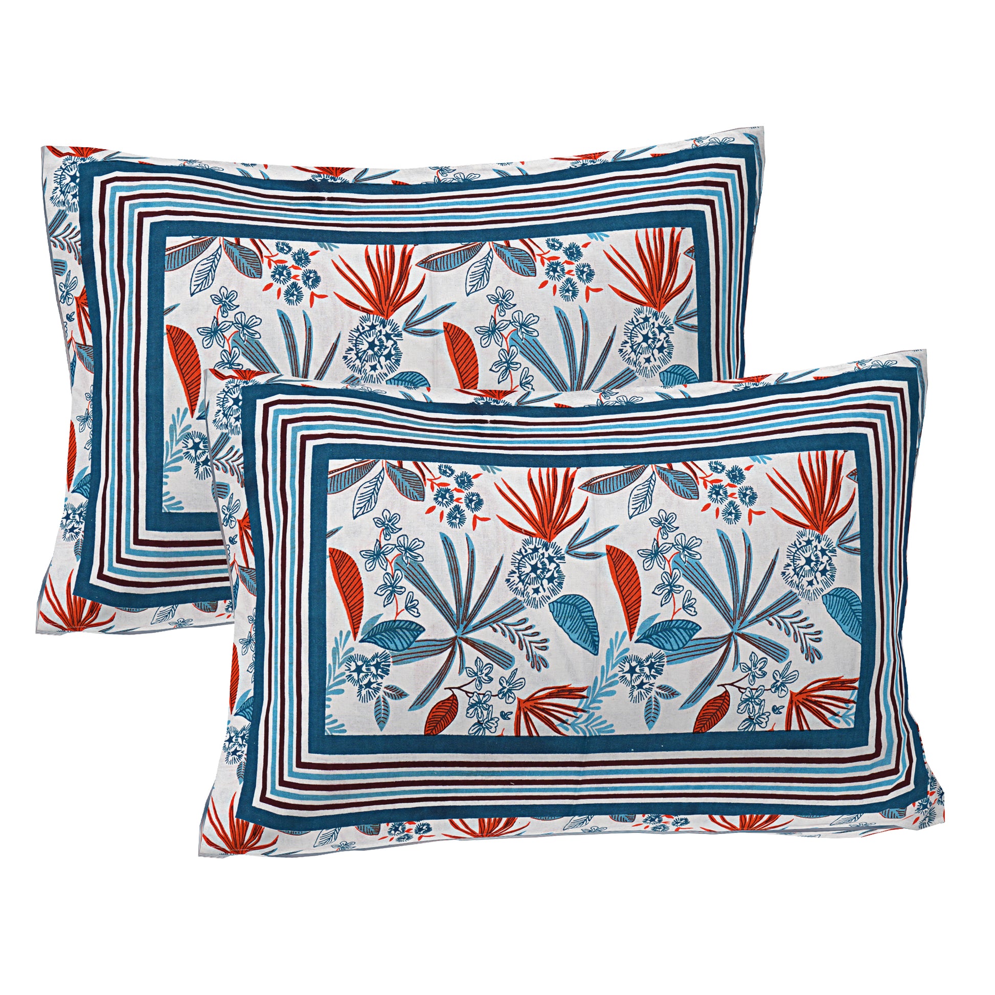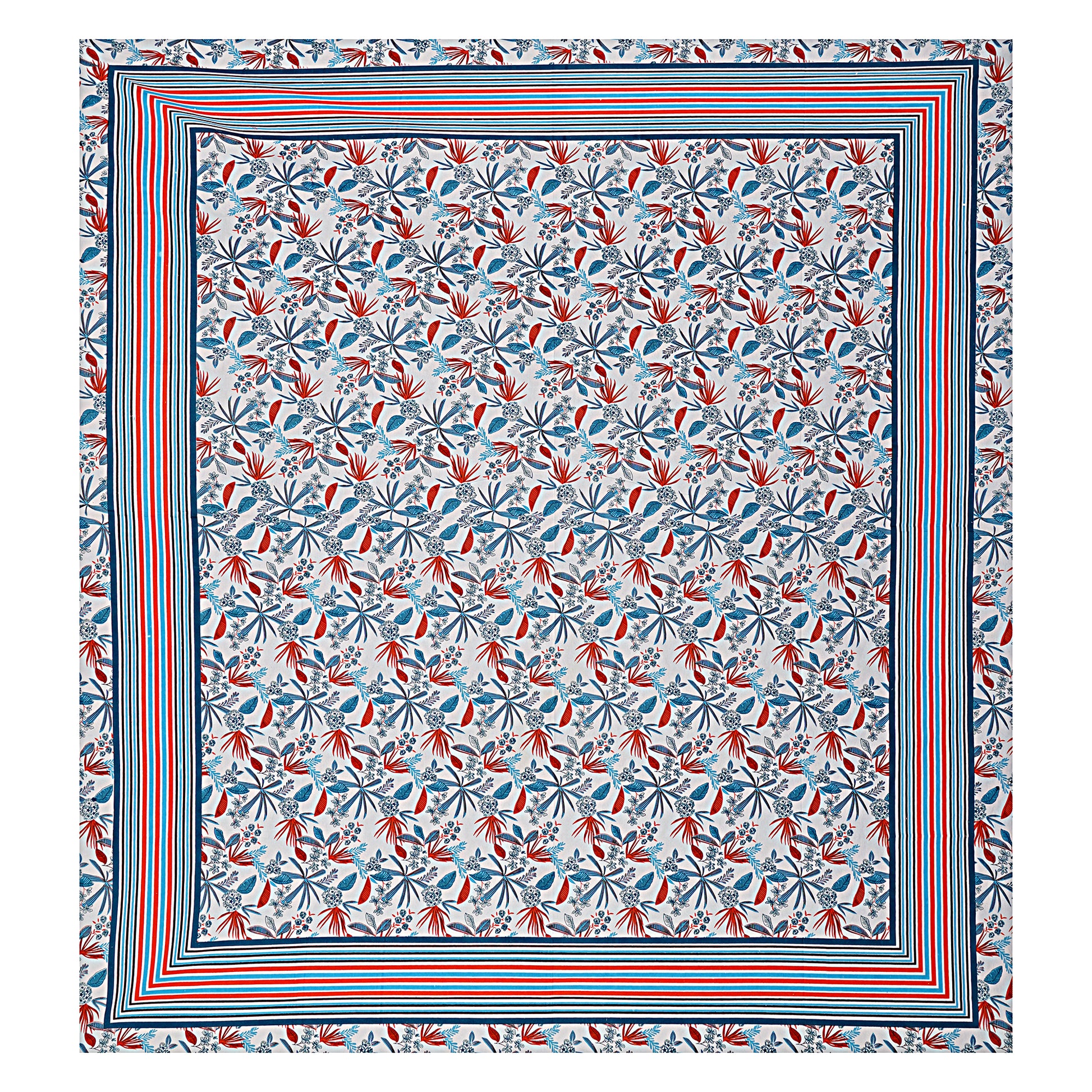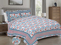 Pure Cotton Jaipur Sanganer Print 100*108 Inch King Size Double Bedsheet ,With 2 Pillow Covers,Blue-1002-3