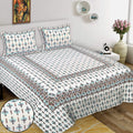Pure Cotton Jaipur Sanganer Print 100*108 Inch King Size Double Bedsheet ,With 2 Pillow Covers,Lighe Blue-1003-4