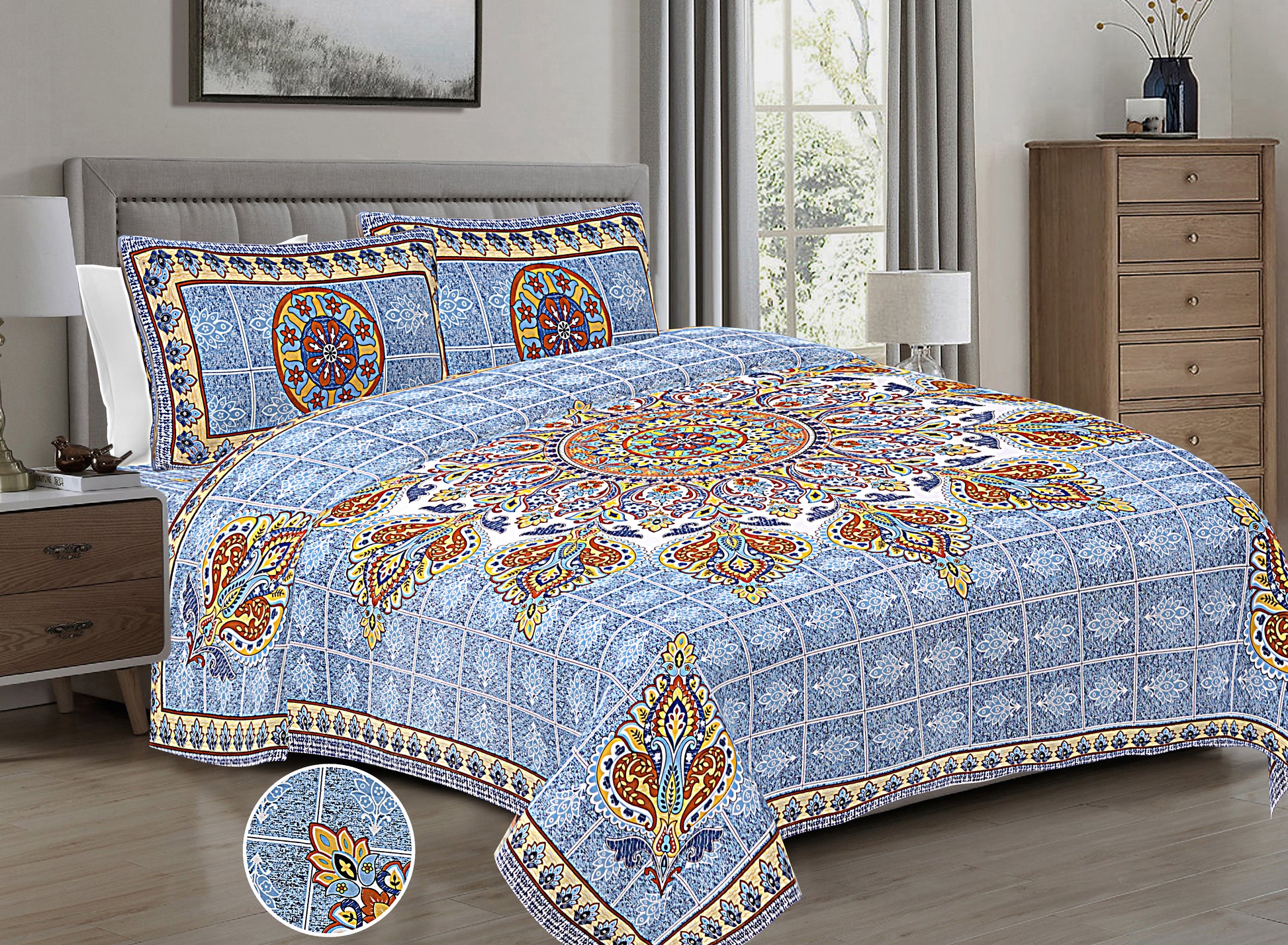 Pure Cotton Jaipur Sanganer Print 100*108 Inch King Size Double Bedsheet ,With 2 Pillow Covers,Blue-1005-2