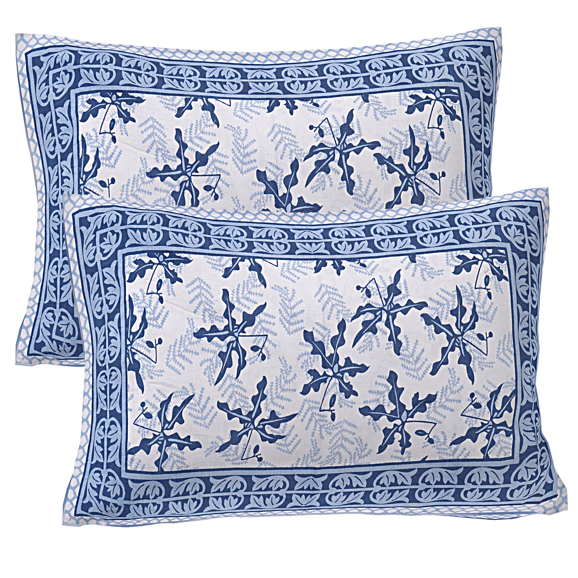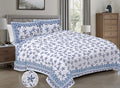 Pure Cotton Jaipur Sanganer Print 100*108 Inch King Size Double Bedsheet ,With 2 Pillow Covers,Blue-1006-2