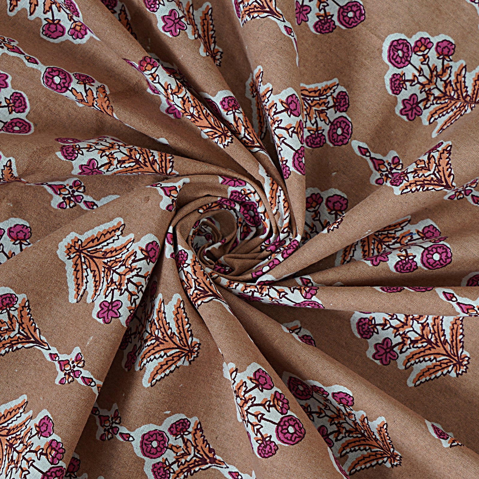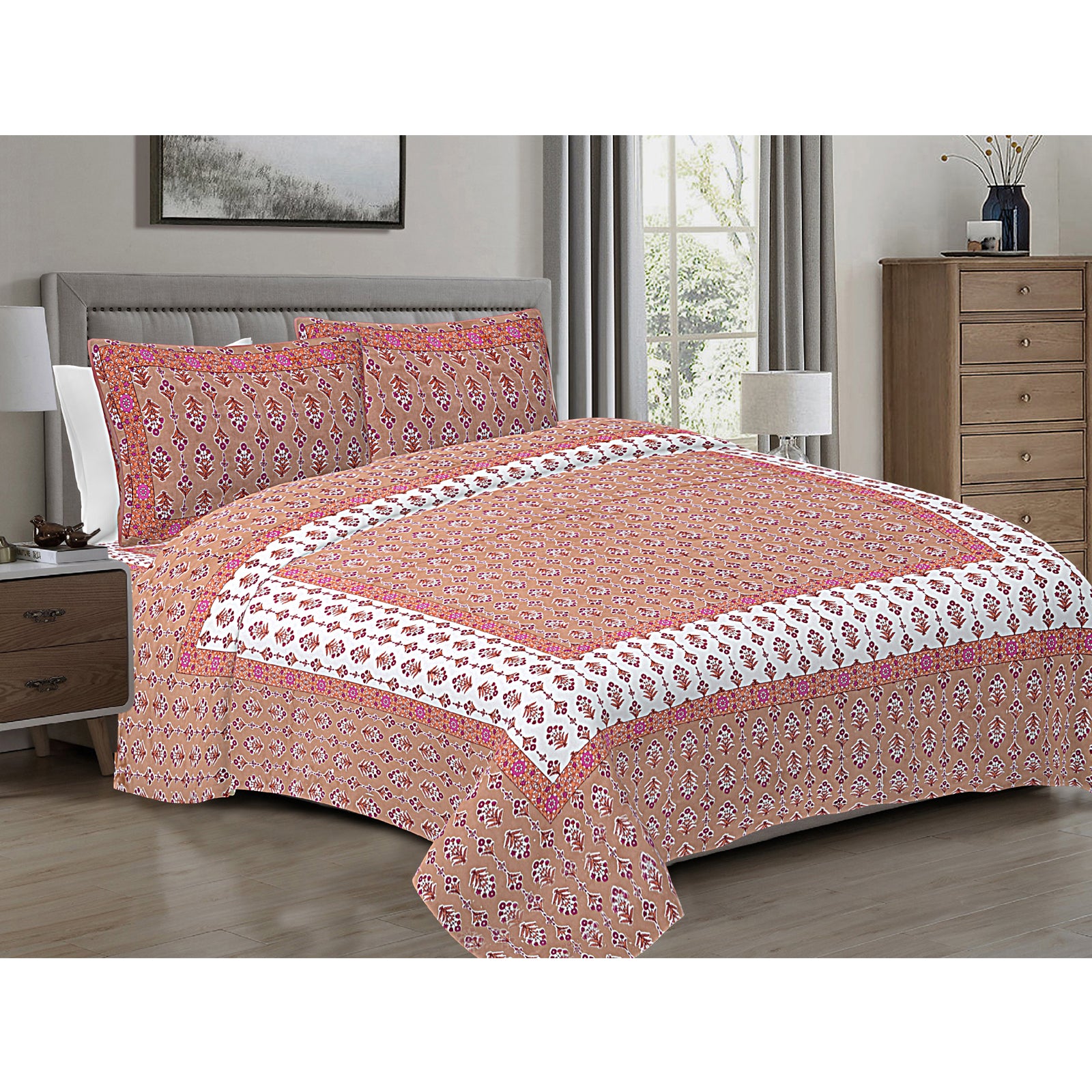 Jaipur Sanganer Print King Size Double Bedsheet,Brown,1008-1