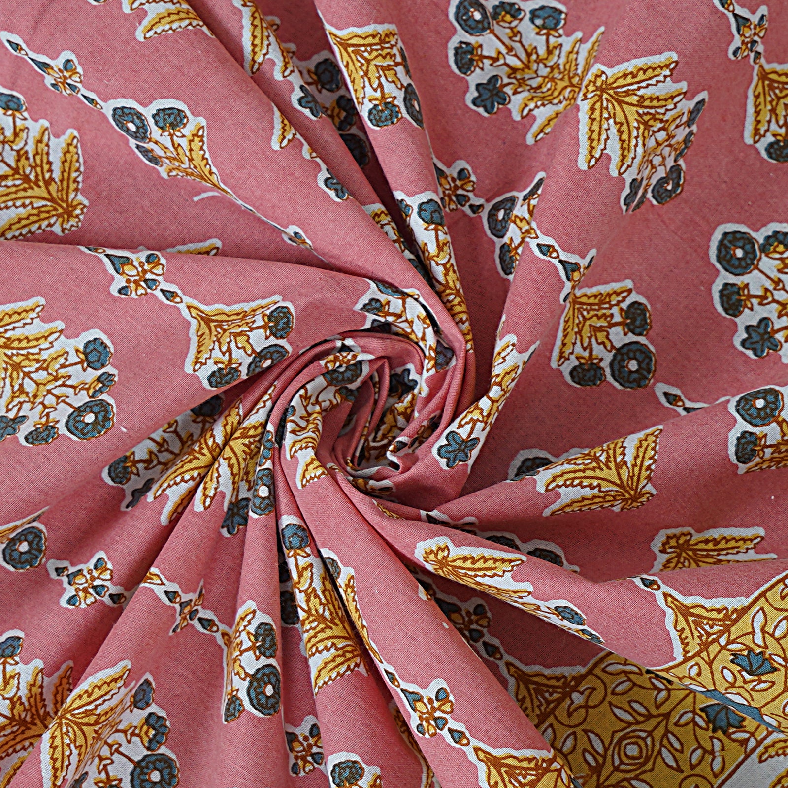 Jaipur Sanganer Print King Size Double Bedsheet,Pink,1008-3