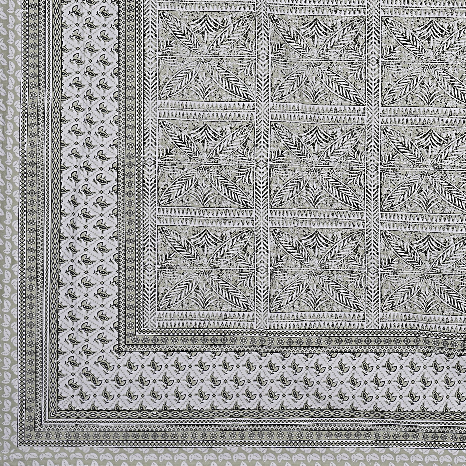 Jaipur Sanganer Print King Size Double Bedsheet,Green,1009-1