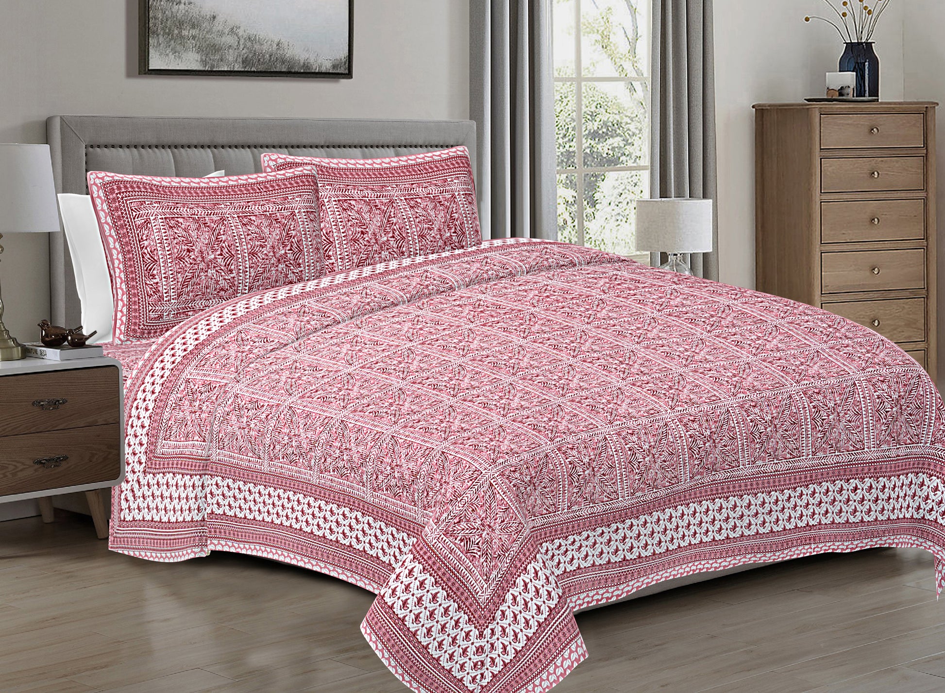 Jaipur Sanganer Print King Size Double Bedsheet,Pink,1009-4