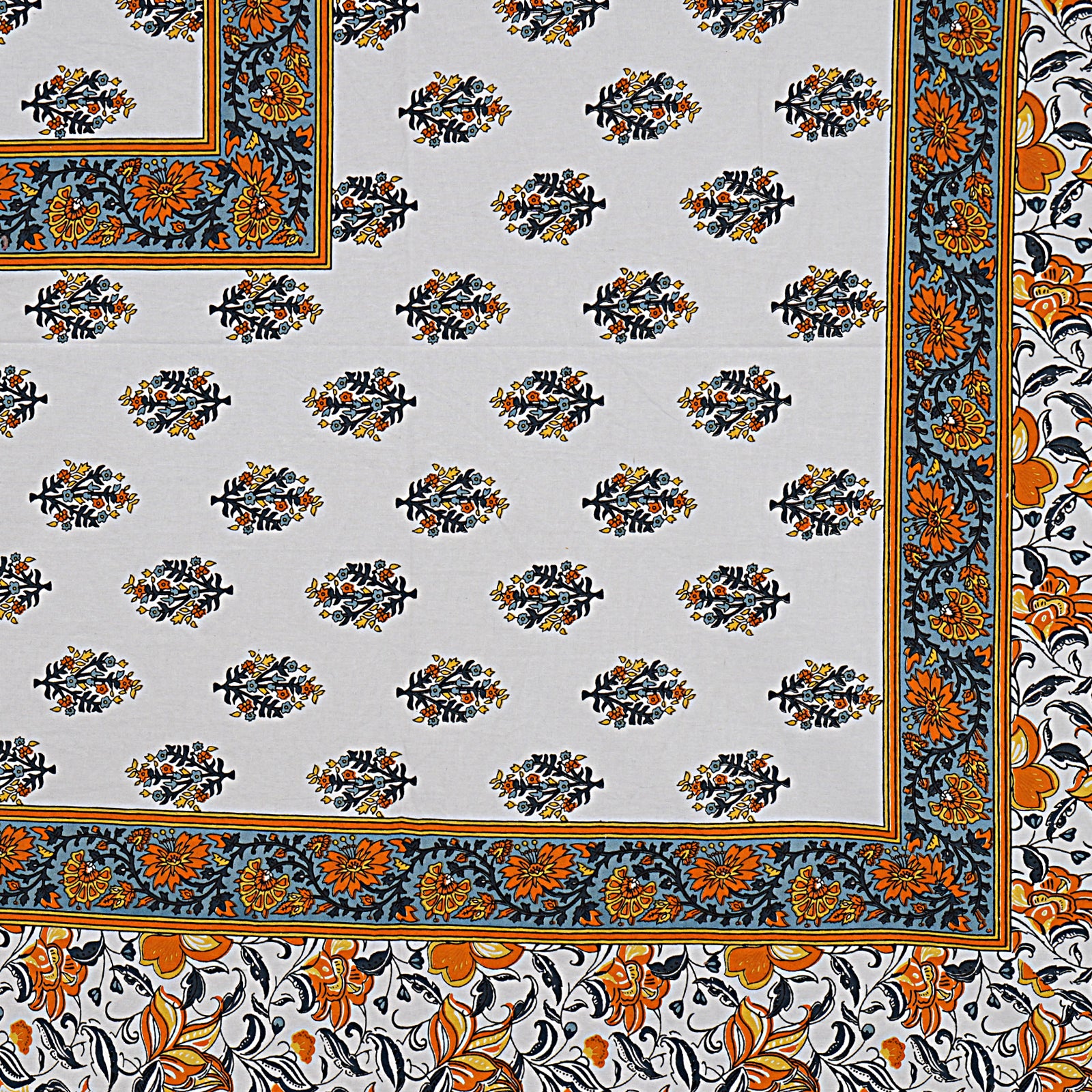 Jaipur Sanganer Print King Size Double Bedsheet,Orange,1010-1