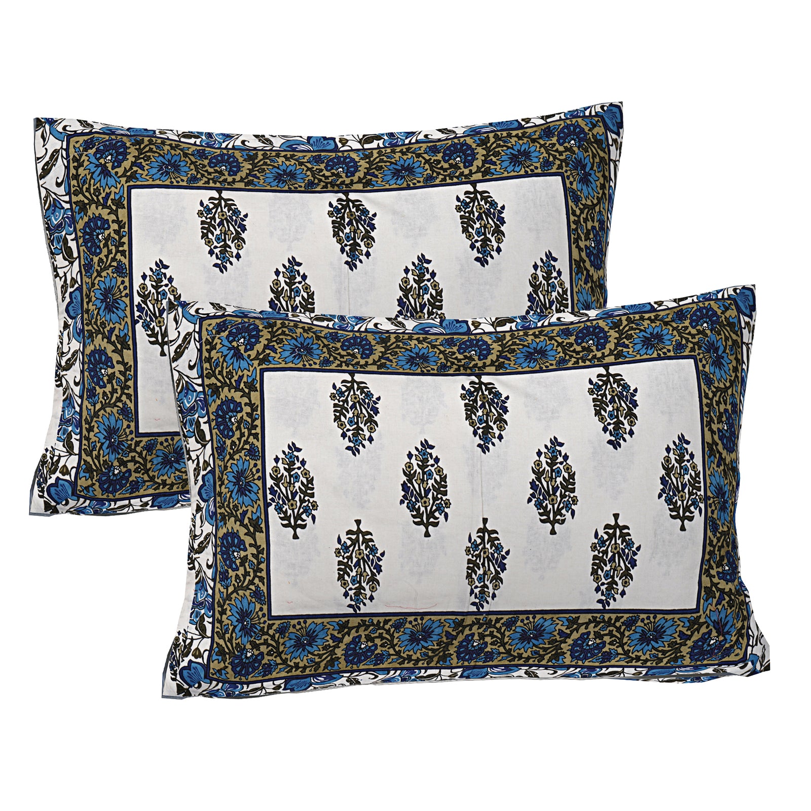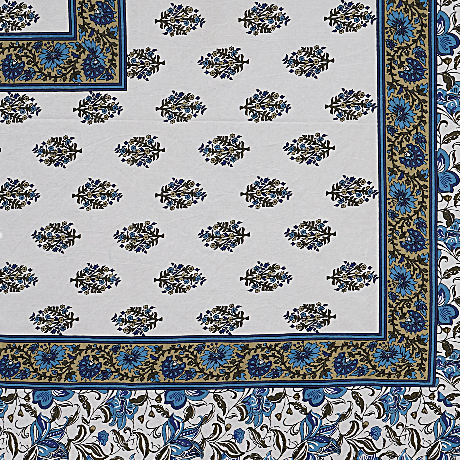 Jaipur Sanganer Print King Size Double Bedsheet,Blue,1010-2