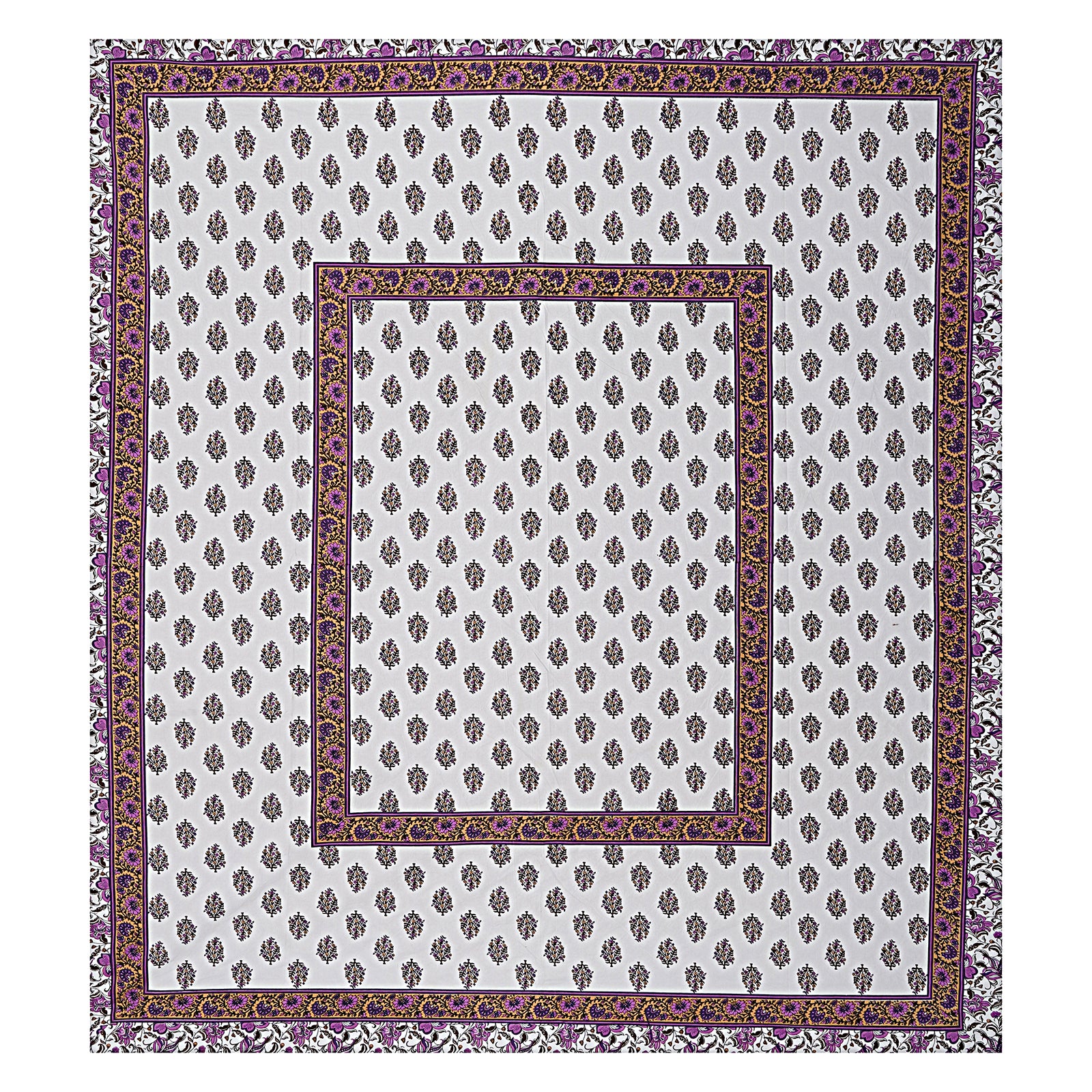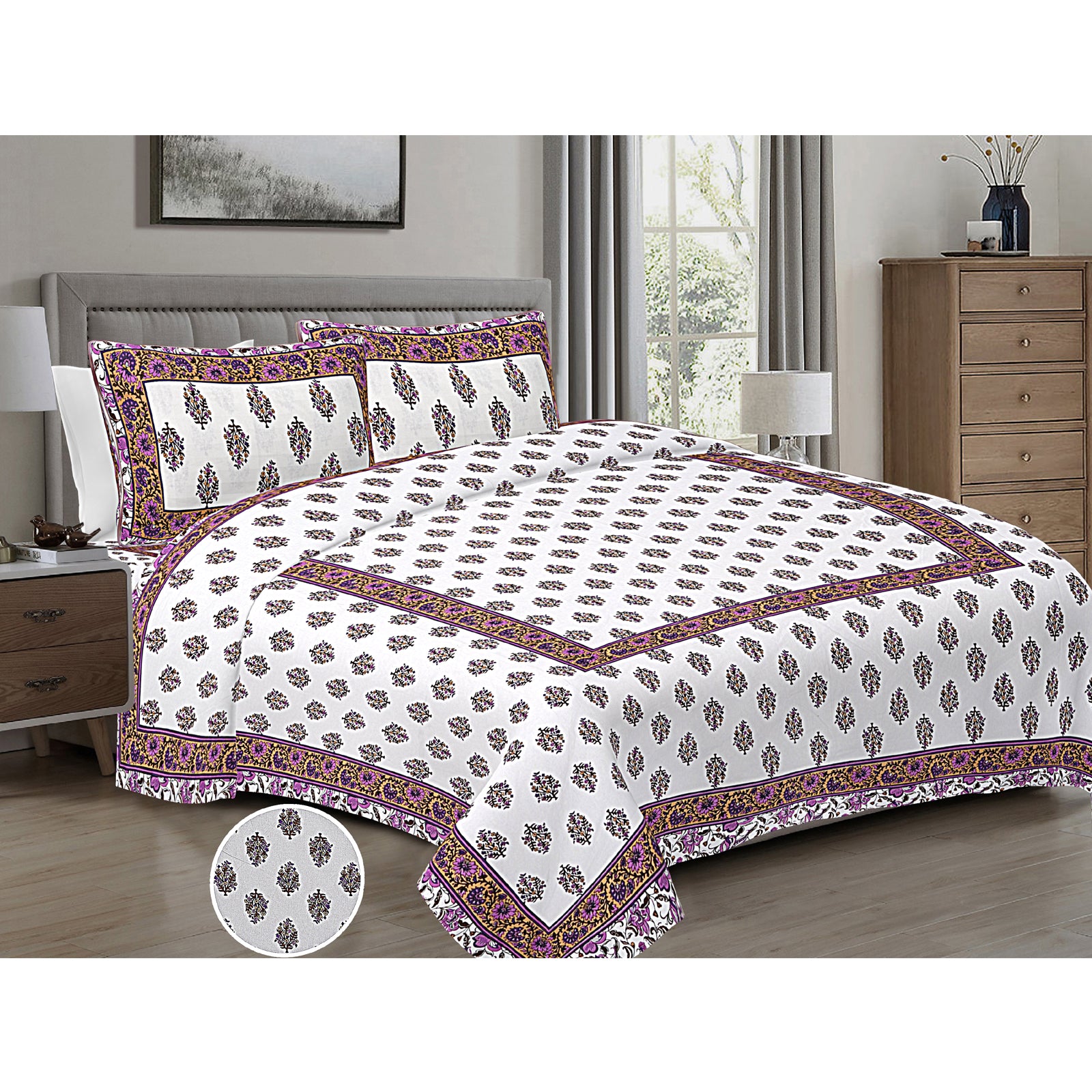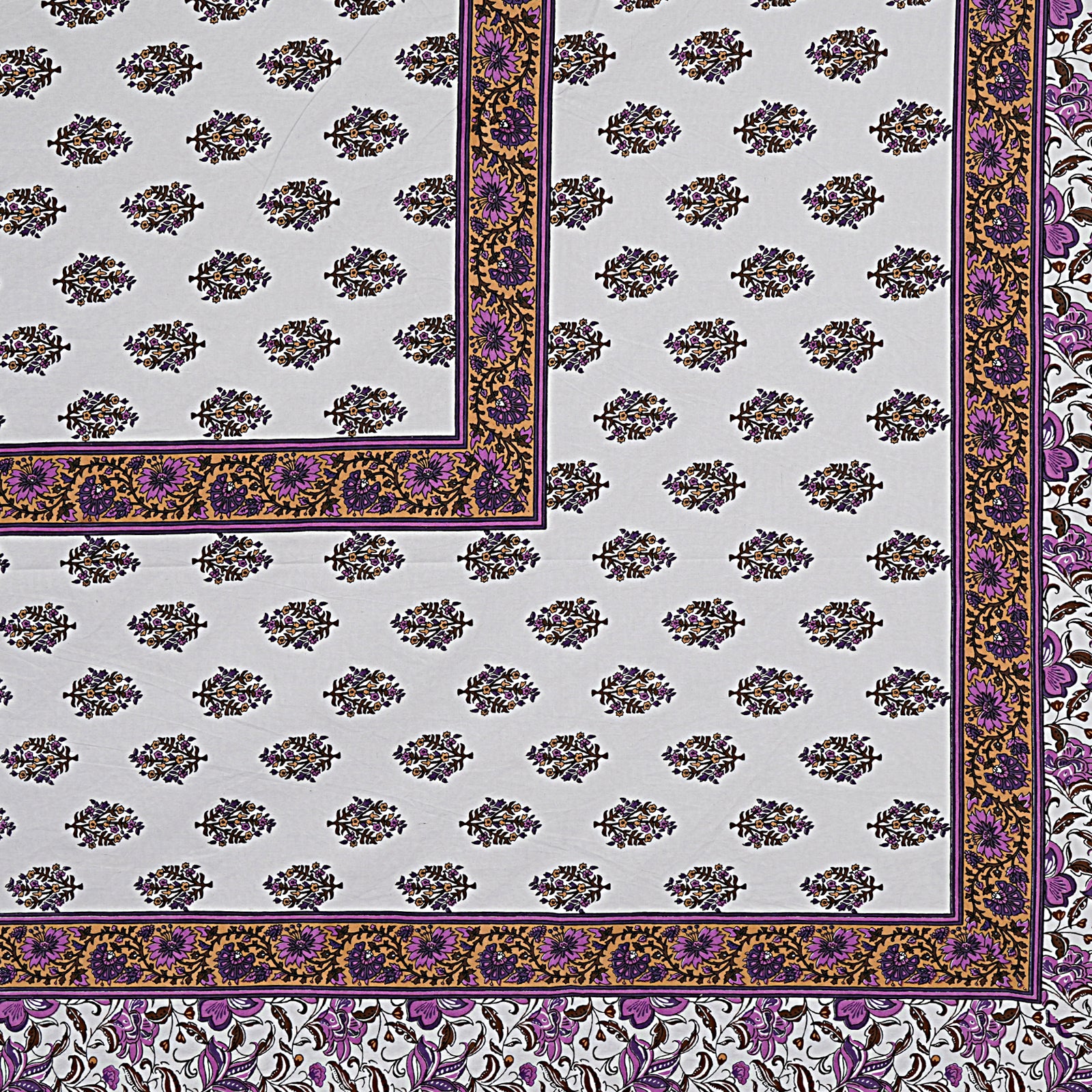 Jaipur Sanganer Print King Size Double Bedsheet,Purple,1010-4