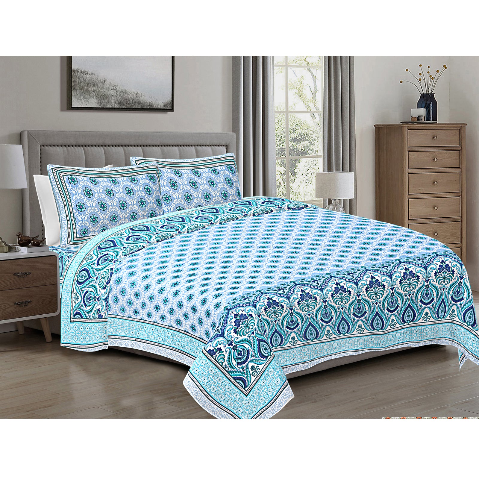 Jaipur Sanganer Print King Size Double Bedsheet,Blue,1011-2
