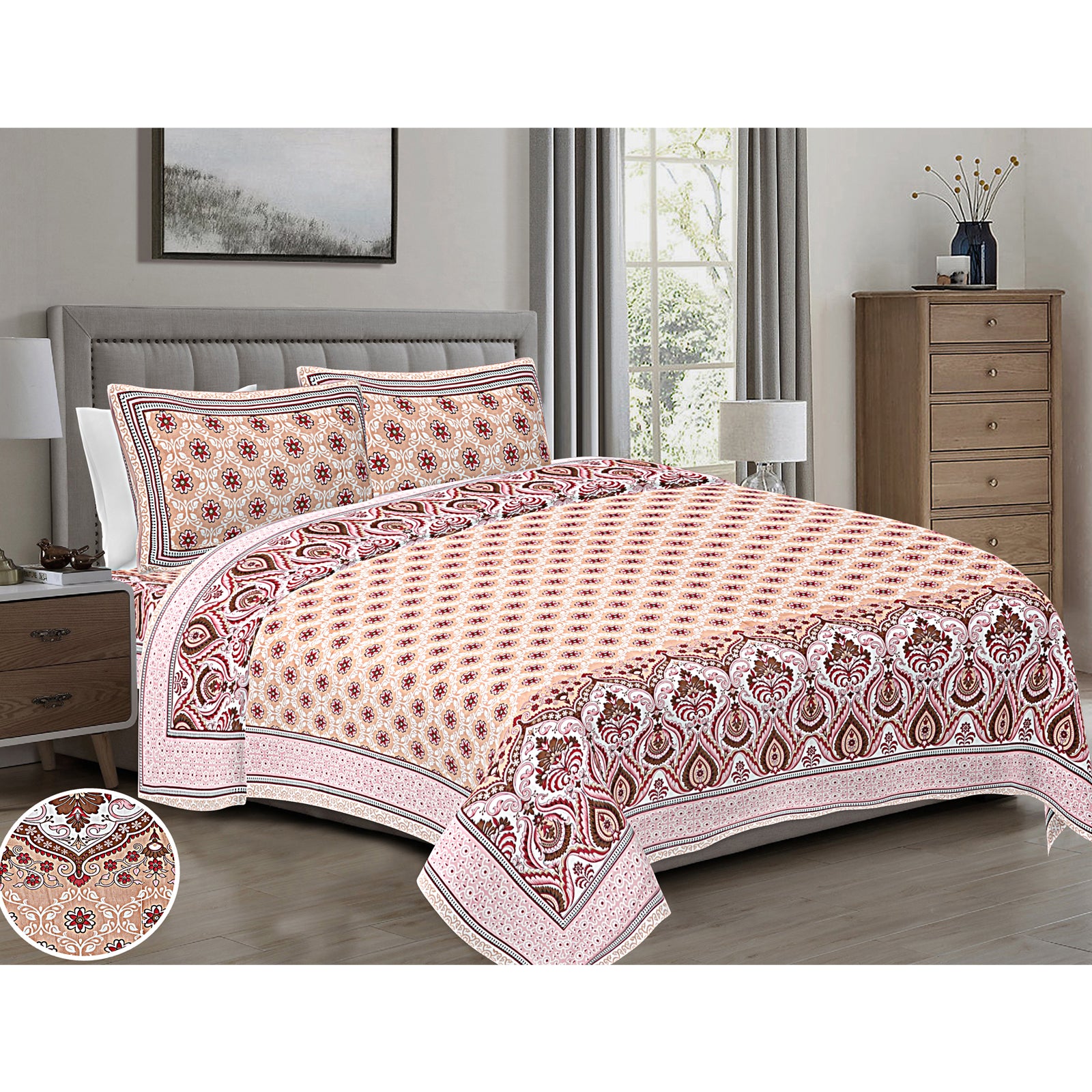 Jaipur Sanganer Print King Size Double Bedsheet,Red,1011-3