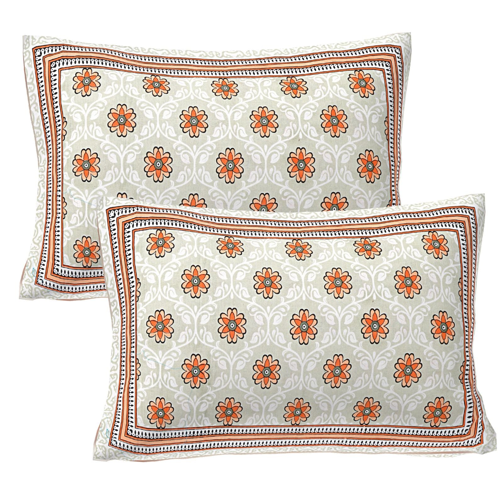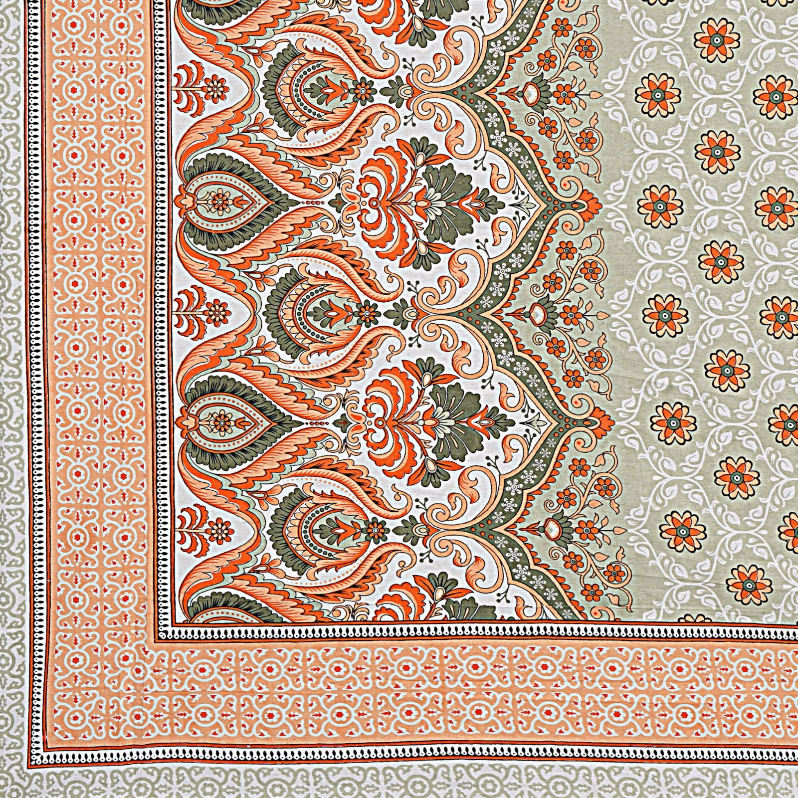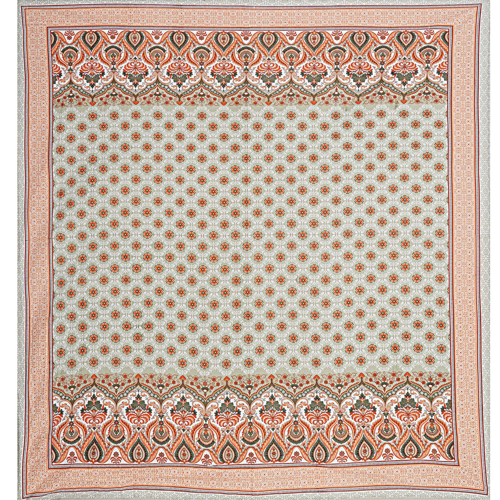 Jaipur Sanganer Print King Size Double Bedsheet,Orange,1011-5