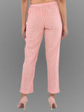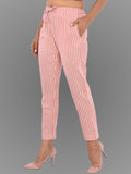 Womens Regular Fit Pink Stripe South Cotton Trouser