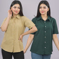 Pack Of 2 Womens Solid Beige And Bottle Green Half Sleeve Cotton Shirts Combo