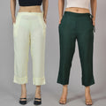 Pack Of 2 Womens Beige And Dark Green Ankle Length Rayon Culottes Trouser Combo
