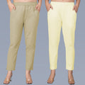 Pack Of 2 Womens Regular Fit Beige And Cream Fully Elastic Waistband Cotton Trouser