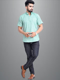 Pack of 2 Mens Solid Beige And Green Khadi Cotton Short Kurta Combo