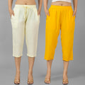 Pack Of 2 Womens Beige And Mustard Calf Length Rayon Culottes Trouser Combo