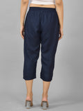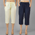 Pack Of 2 Womens Beige And Navy Blue Calf Length Rayon Culottes Trouser Combo