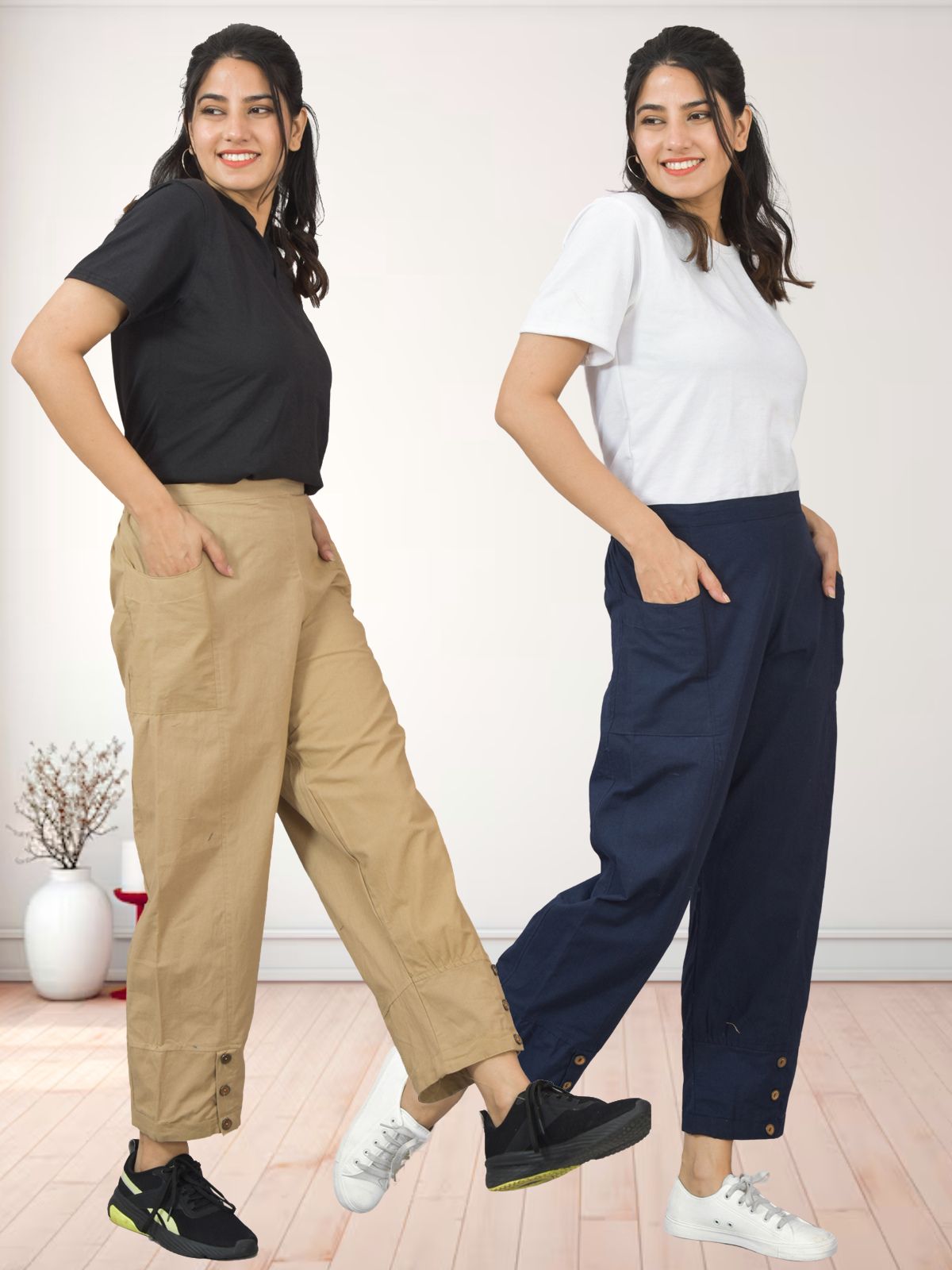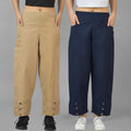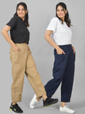 Combo Pack Of Womens Beige And Navy Blue Side Pocket Straight Cargo Pants