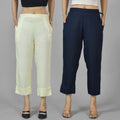 Pack Of 2 Womens Beige And Navy Blue Ankle Length Rayon Culottes Trouser Combo
