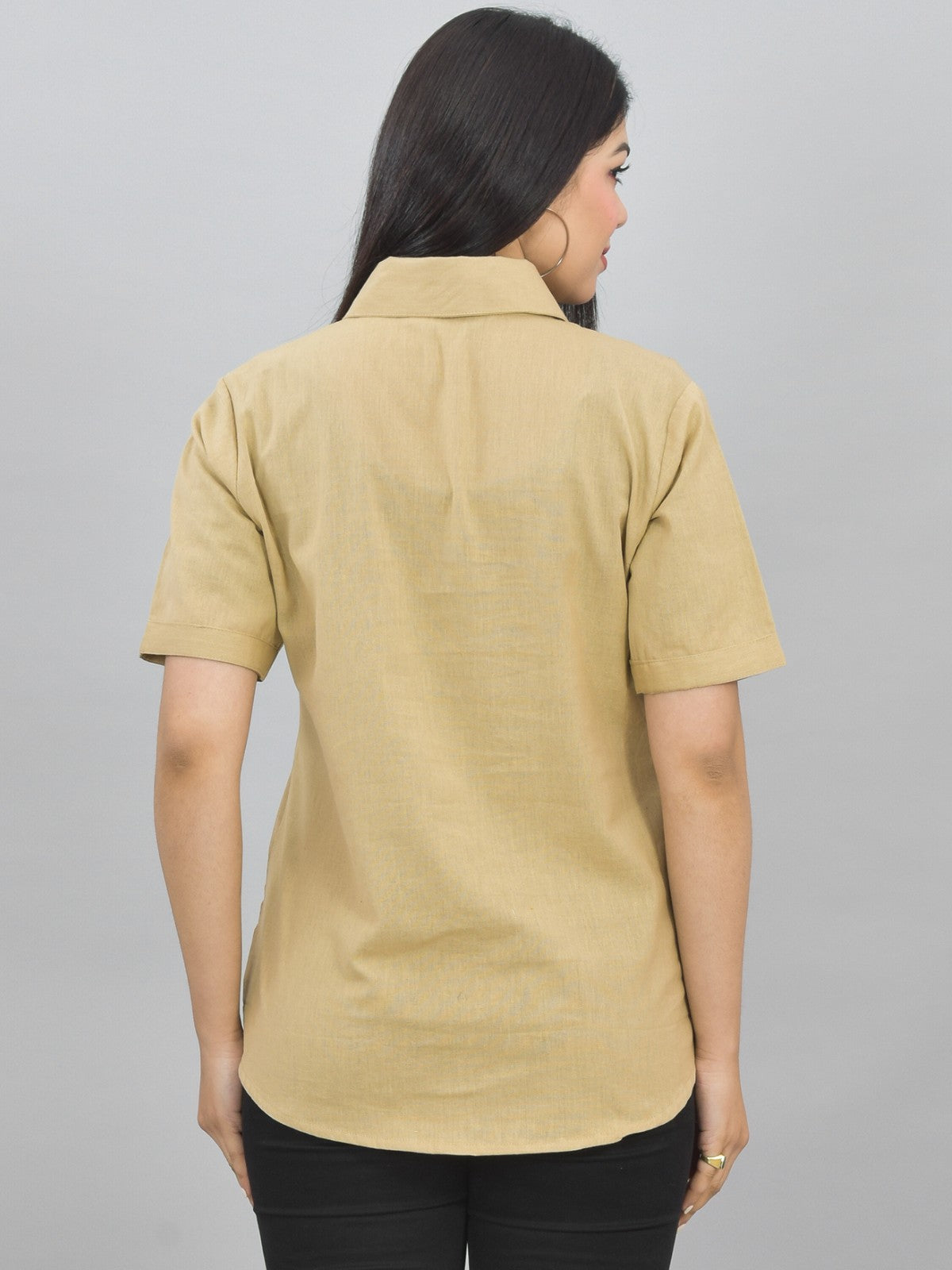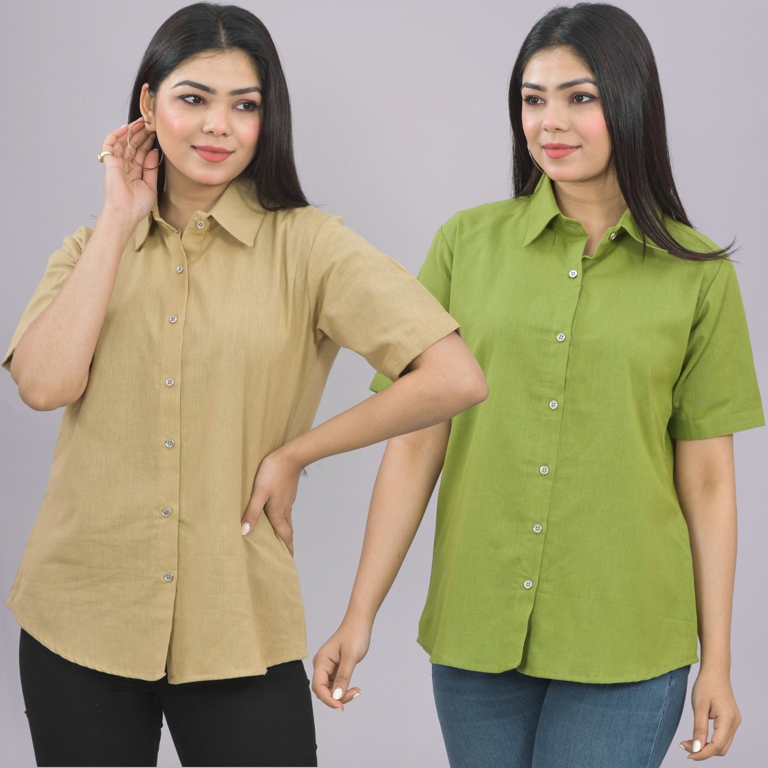 Pack Of 2 Womens Solid Beige And Olive Green Half Sleeve Cotton Shirts Combo