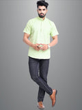 Pack of 2 Mens Solid Beige And Parrot Green Khadi Cotton Short Kurta Combo