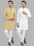 Mens Solid Beige And White Cotton Long Kurta Combo
