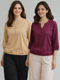 Pack Of 2 Beige and Wine Viscose Waist-Fit Tops