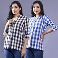 Pack Of 2 Womens Black And Blue Chekerd Casual Shirt Combo