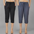 Pack Of 2 Womens Black And Dark Grey Calf Length Rayon Culottes Trouser Combo