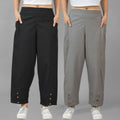 Combo Pack Of Womens Black And Grey Side Pocket Straight Cargo Pants