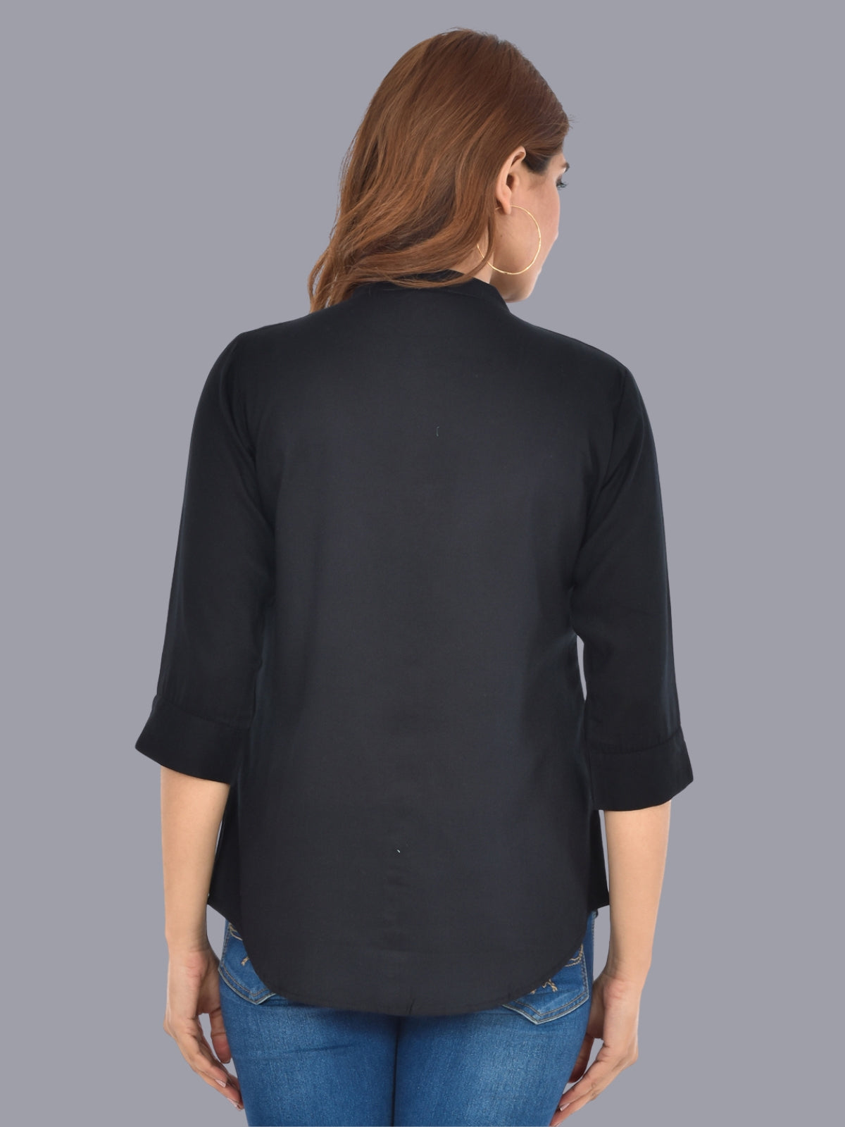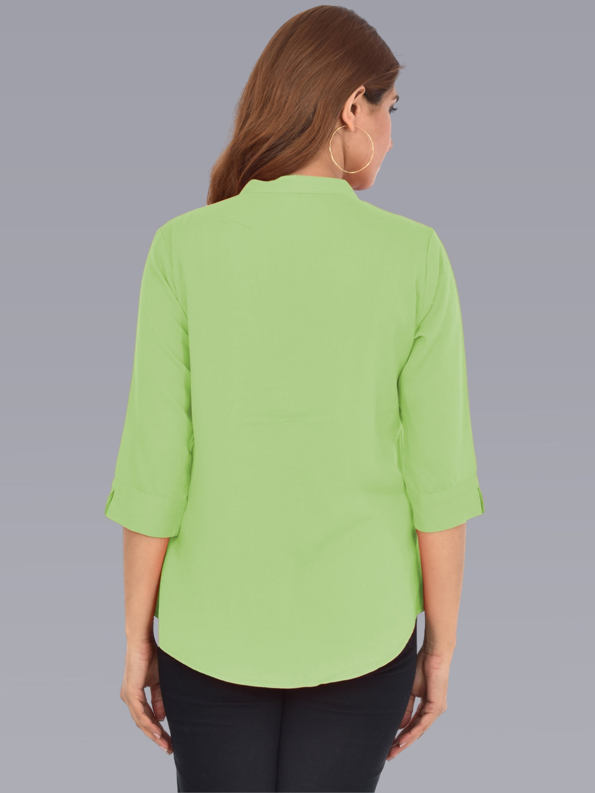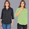 Pack Of 2 Womens Solid Black and Light Green Rayon Chinese Collar Shirts Combo