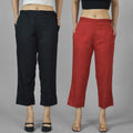 Pack Of 2 Womens Black And Maroon Ankle Length Rayon Culottes Trouser Combo