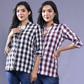 Pack Of 2 Womens Black And Maroon Chekerd Casual Shirt Combo