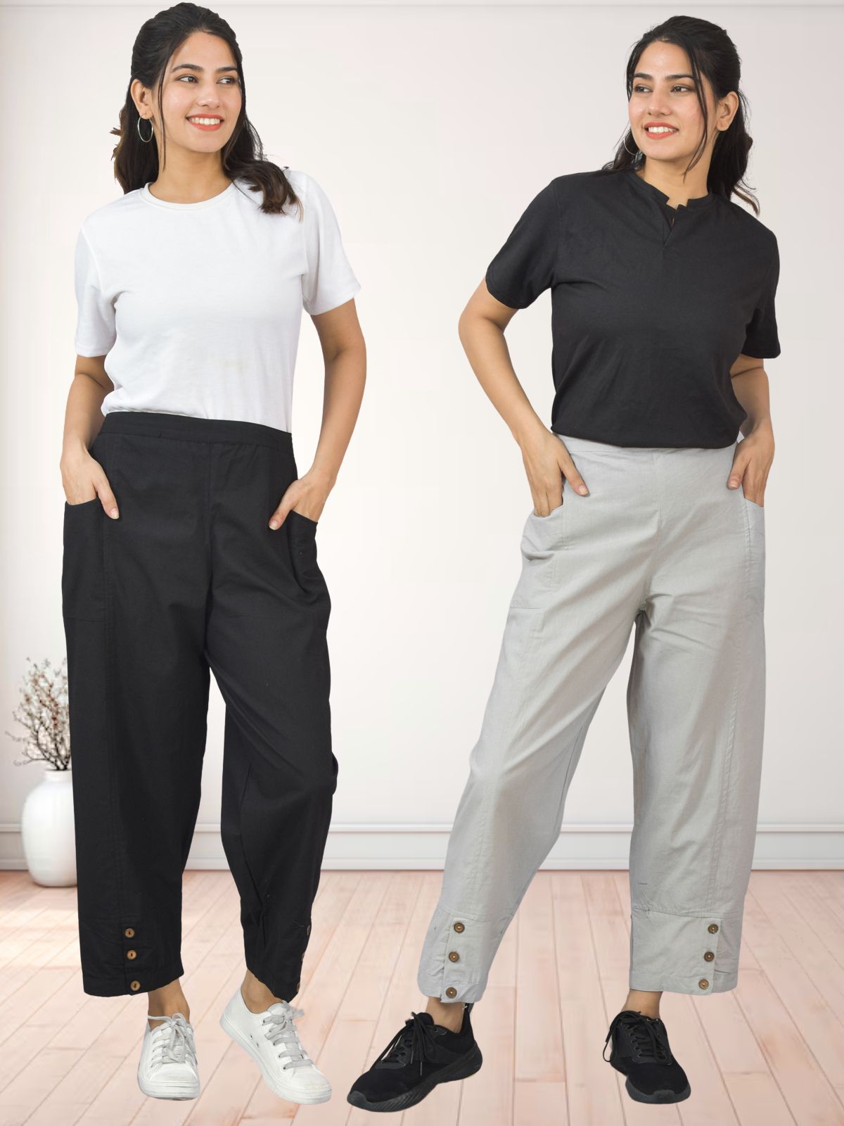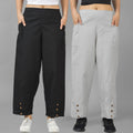 Combo Pack Of Womens Black And Melange Grey Side Pocket Straight Cargo Pants