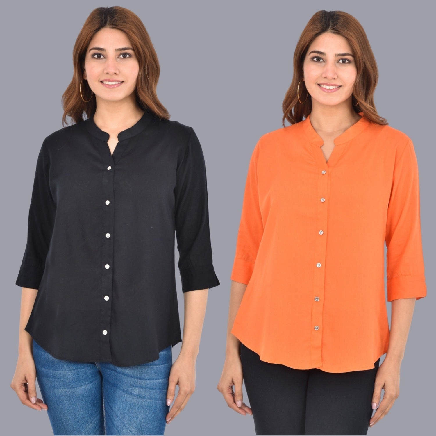 Pack Of 2 Womens Solid Black and Peach Rayon Chinese Collar Shirts Combo