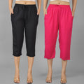 Pack Of 2 Womens Black And Rani Pink Calf Length Rayon Culottes Trouser Combo