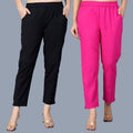 Pack Of 2 Womens Regular Fit Black And Rani Fully Elastic Waistband Cotton Trouser