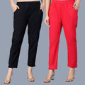 Pack Of 2 Womens Regular Fit Black And Red Fully Elastic Waistband Cotton Trouser