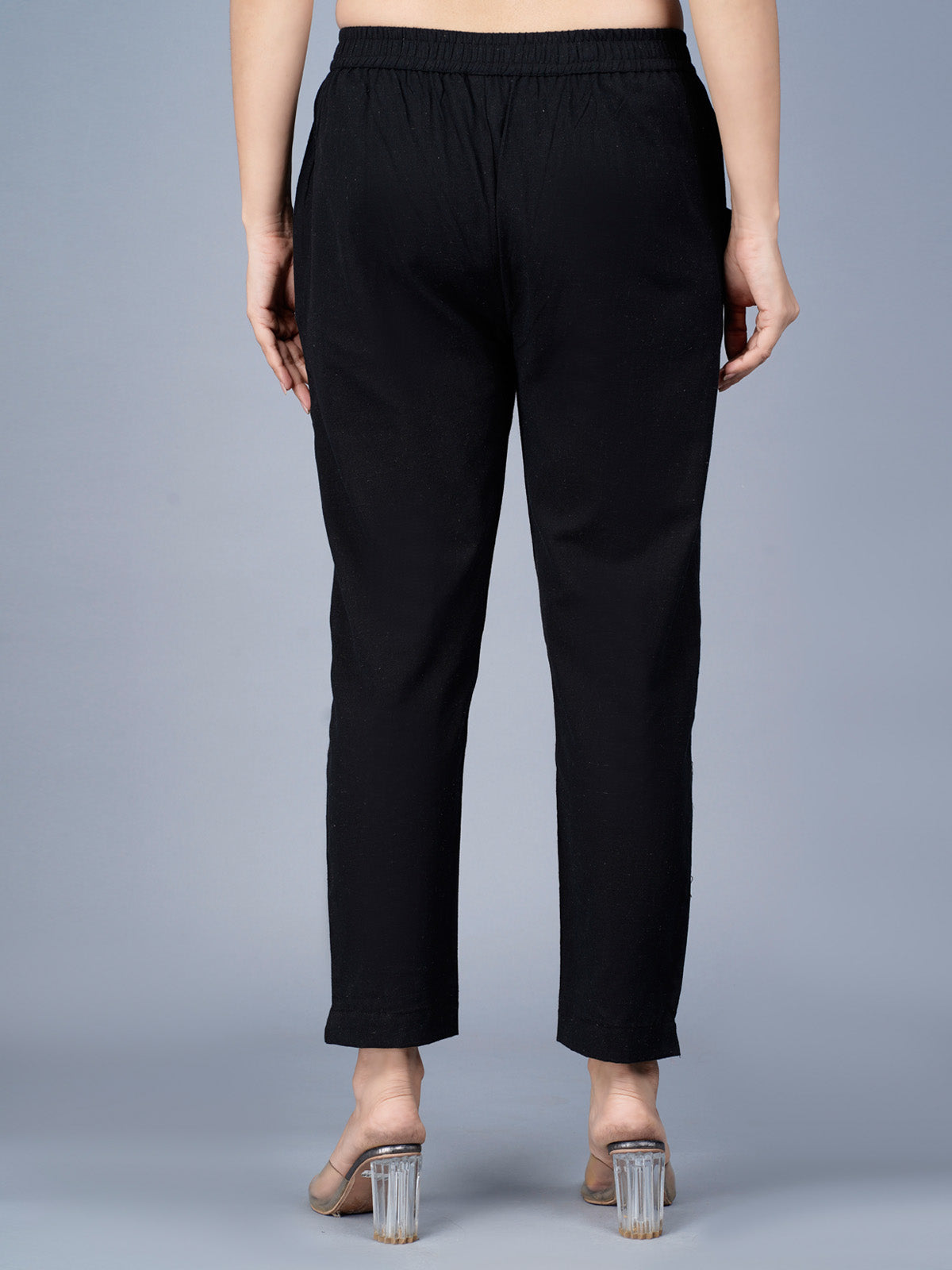 QuaClo Pack Of Two Womens Regular Fit Cotton Trousers offer the ideal fusion of comfort and style. These trousers are created with premium cotton fabric and feature an all-day comfy fit. They are perfect for both casual wear and dressing up for special occasions thanks to the full elastic waistband, which guarantees a snug and secure fit. Good Day!! Happy Shopping! Solid Elastic South Cotton Women Trouser Occasion - Casual , Travel , Work Wear Ideal For: Women Fit Type: Regular Fit Fabric: Pure Cotton Closure Type: Elastic Care Instructions: Machine Wash
