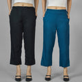 Pack Of 2 Womens Black And Teal Blue Ankle Length Rayon Culottes Trouser Combo