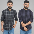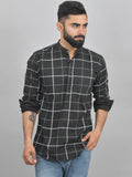 Pack Of 2 Mens Black Wide And Grey Check Cotton Short Kurta Combo