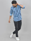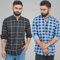 Pack Of 2 Mens Black Wide And Ice Blue Check Cotton Short Kurta Combo