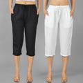 Pack Of 2 Womens Black And White Calf Length Rayon Culottes Trouser Combo