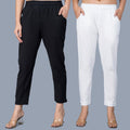 Pack Of 2 Womens Regular Fit Black And White Fully Elastic Waistband Cotton Trouser