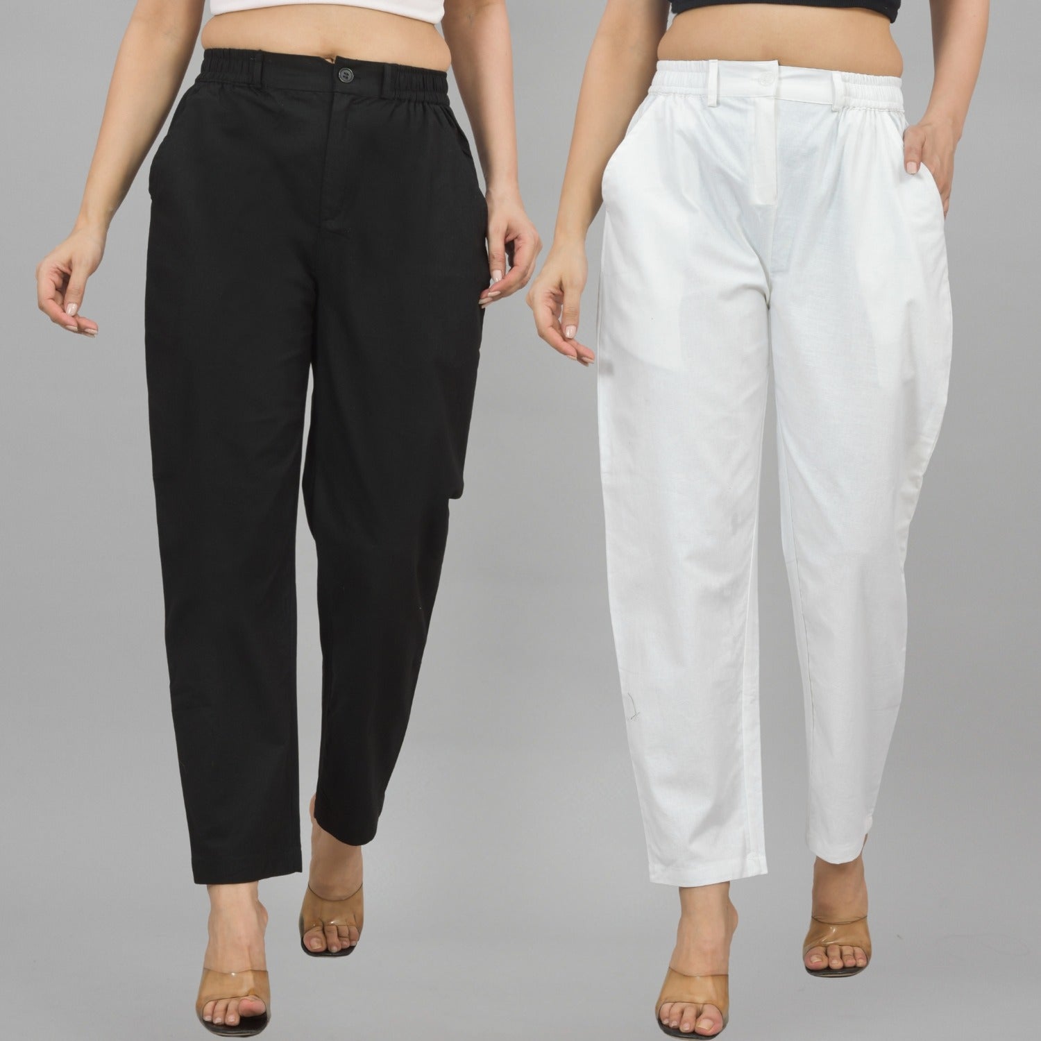 Combo Pack Of 2 Black And White Womens Cotton Formal Pants