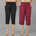 Pack Of 2 Womens Black And Wine Calf Length Rayon Culottes Trouser Combo